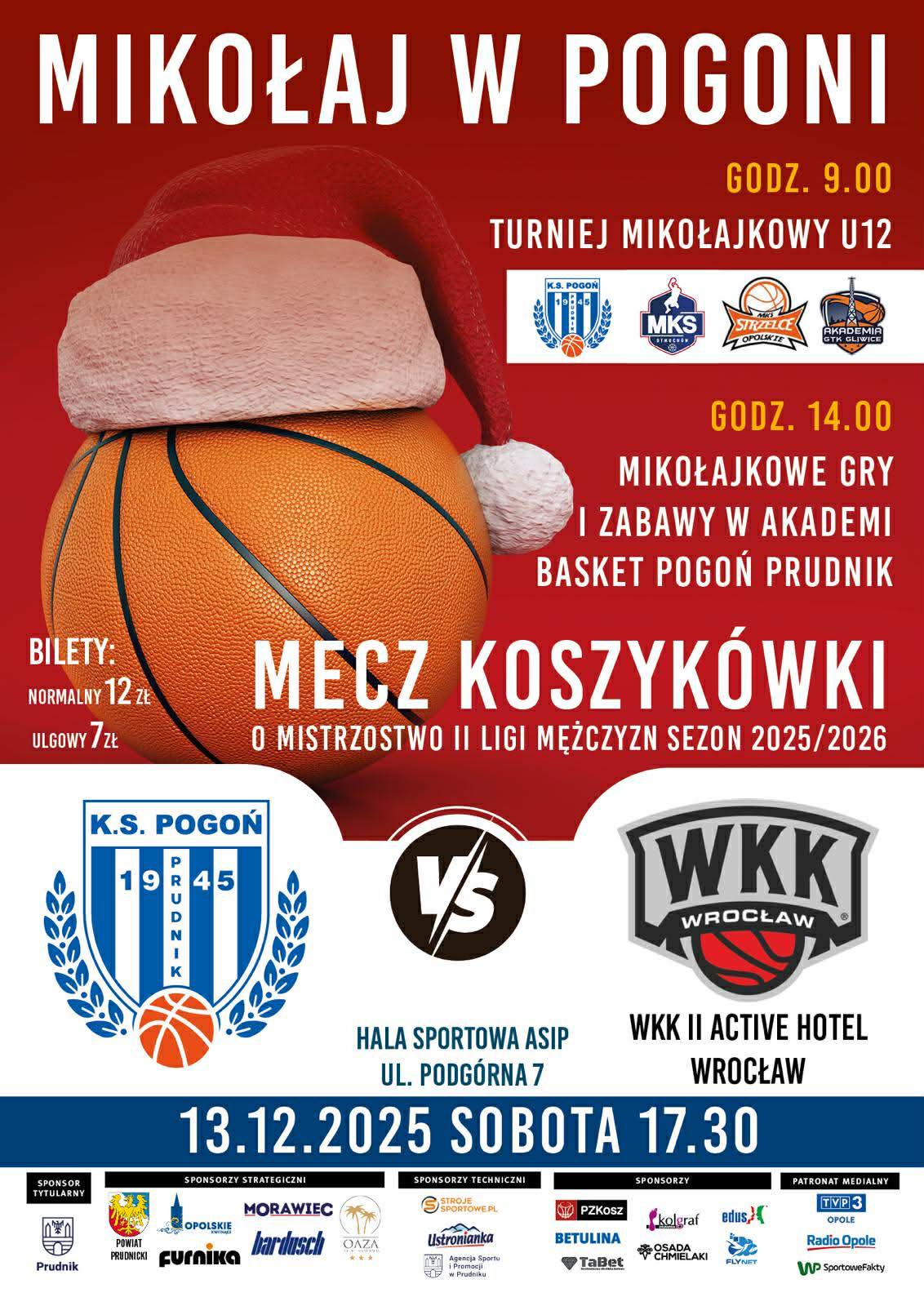 W sobotę biało-niebiescy rozegrają swój ostatni mecz w tym roku w hali Sójka. W ramach 14 kolejki będziemy podejmować młody zespół rezerw pierwszoligowego WKK Wrocław. Przy okazji zapraszamy wszystkich na "Mikołajki w Pogoni". Z tej okazji przygotowaliśmy masę atrakcji: Turniej Mikołajkowy U12, Mikołajkowe gry i zabawy w naszej Akademii, a na koniec wspomniany mecz ligowy seniorskiej drużyny Pogoni. Zaczynamy już o godz. 9:00.